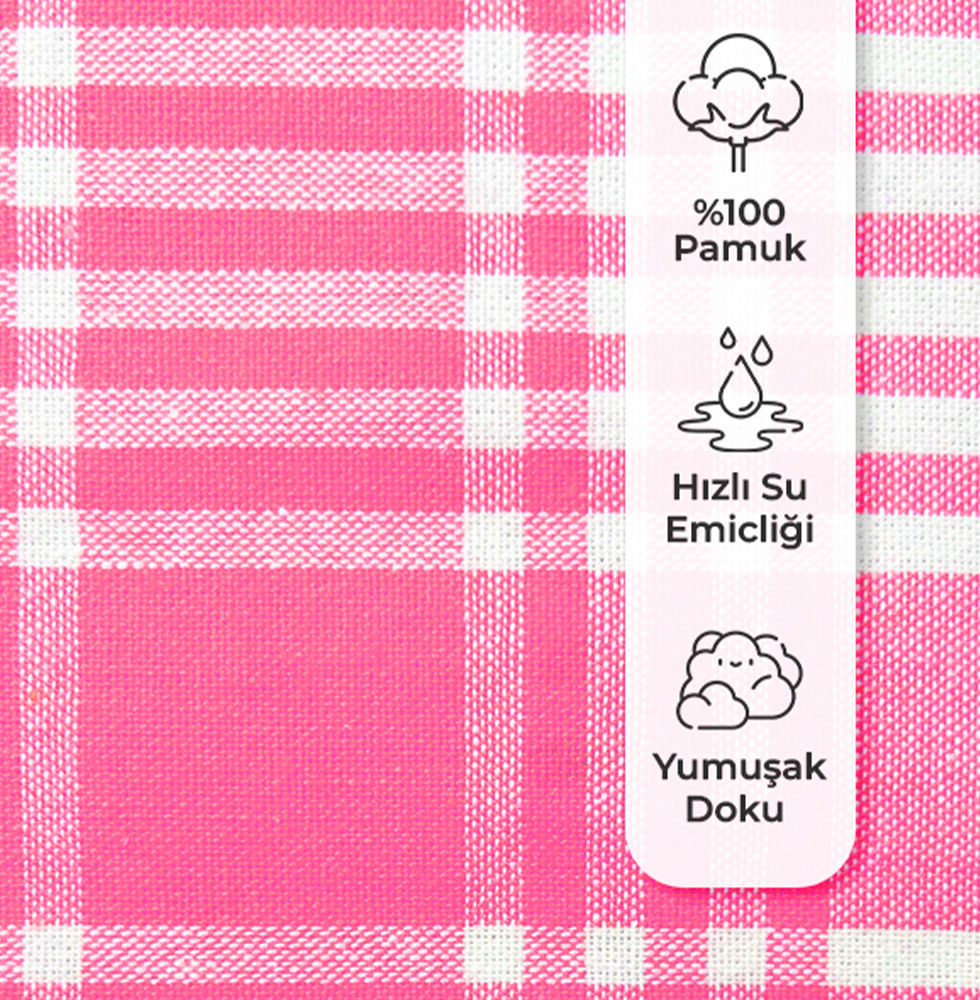Bu 45x70 cm ölçülerindeki pöti kareli nar çiçeği kurulama bezi, %100 pamuktan üretilmiştir. Yüksek su emiciliği sayesinde mutfakta, sofrada ya da beslenme örtüsü olarak günlük kullanımda pratiklik sunar. Hav yapmayan, iz bırakmayan yapısıyla hijyenik ve şık bir alternatiftir. Farklı renk seçenekleriyle tarzınıza ve kullanım alanınıza uygun kombinler yapabilirsiniz. Yıkama sonrası formunu korur, uzun ömürlü kullanım sağlar. Hem işlevsel hem estetik bir tekstil ürünüdür.